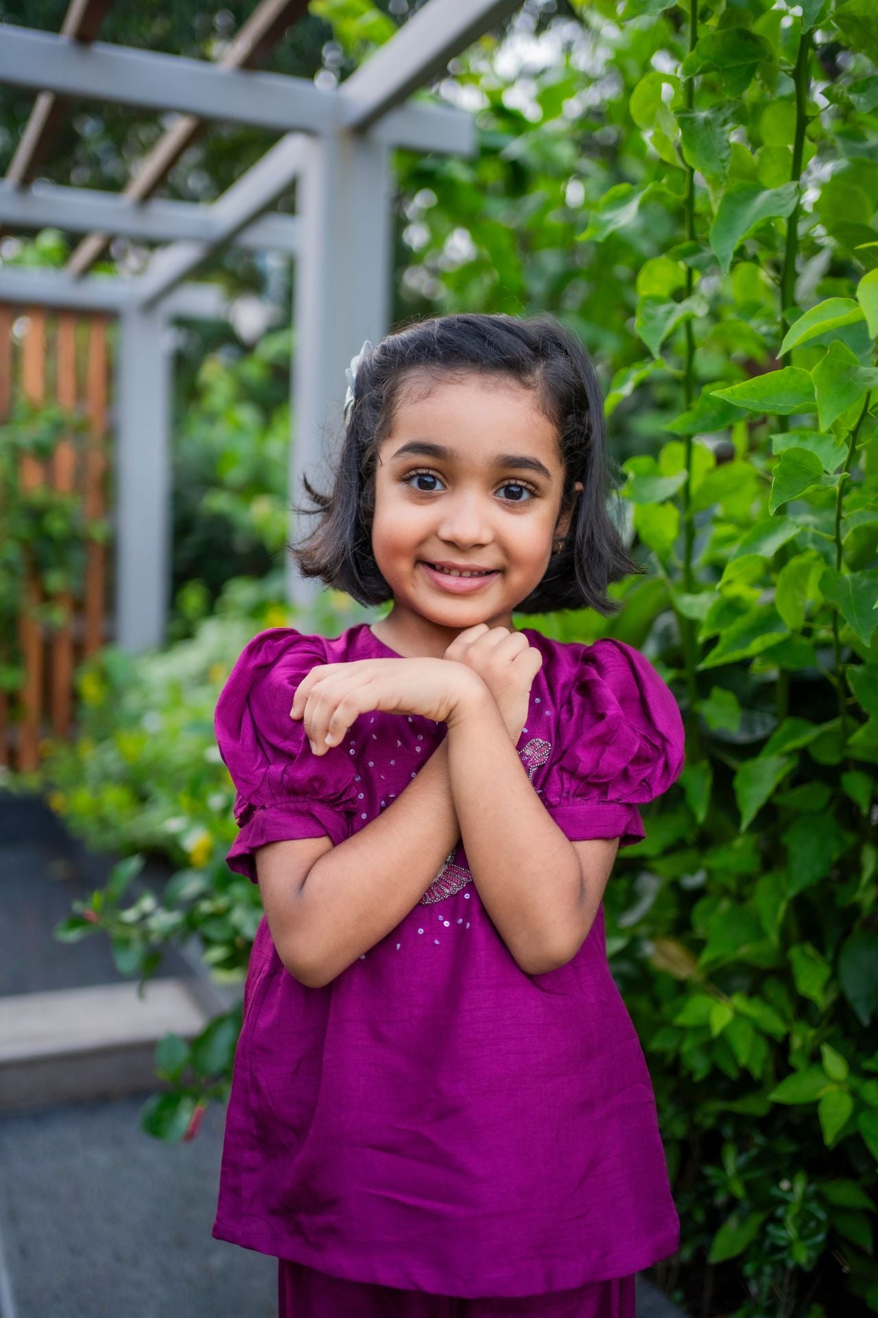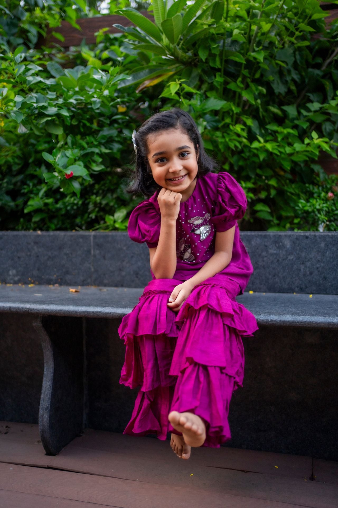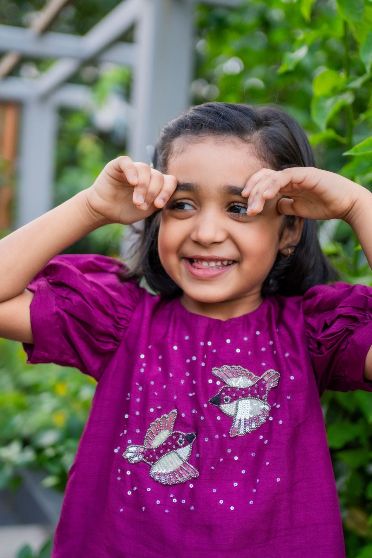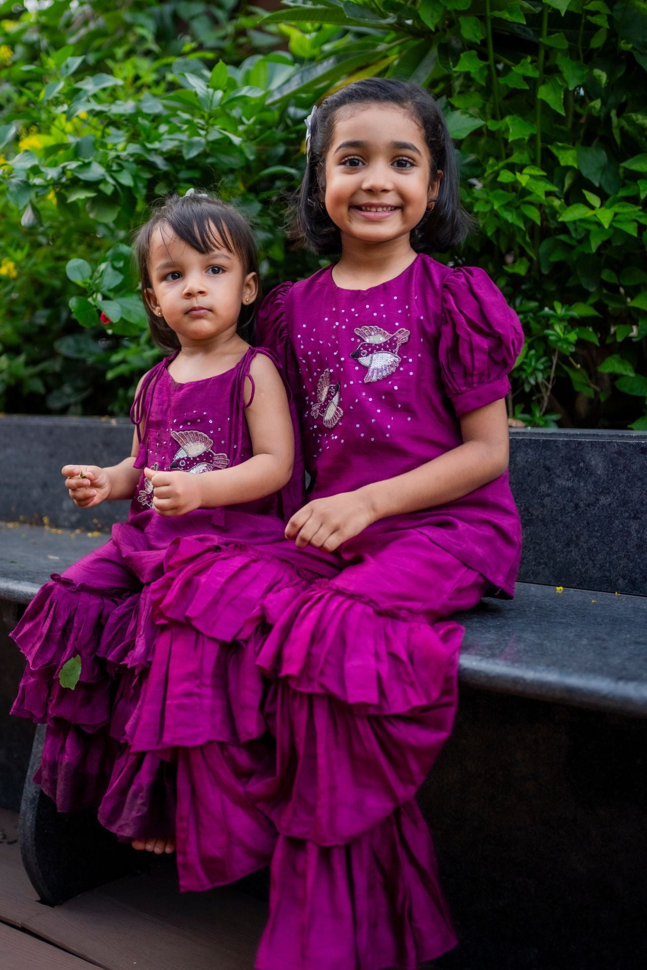 Crafted for carefree celebrations, this sharara set in a soft palette features delicate bird motifs that add a playful charm. The strappy blouse pairs effortlessly with a flared sharara, offering a breezy, lightweight fit so little girls can twirl and play with ease. Ideal for daytime festivities, Rakhi, or destination weddings, this outfit is equal parts comfort and festive sparkle.