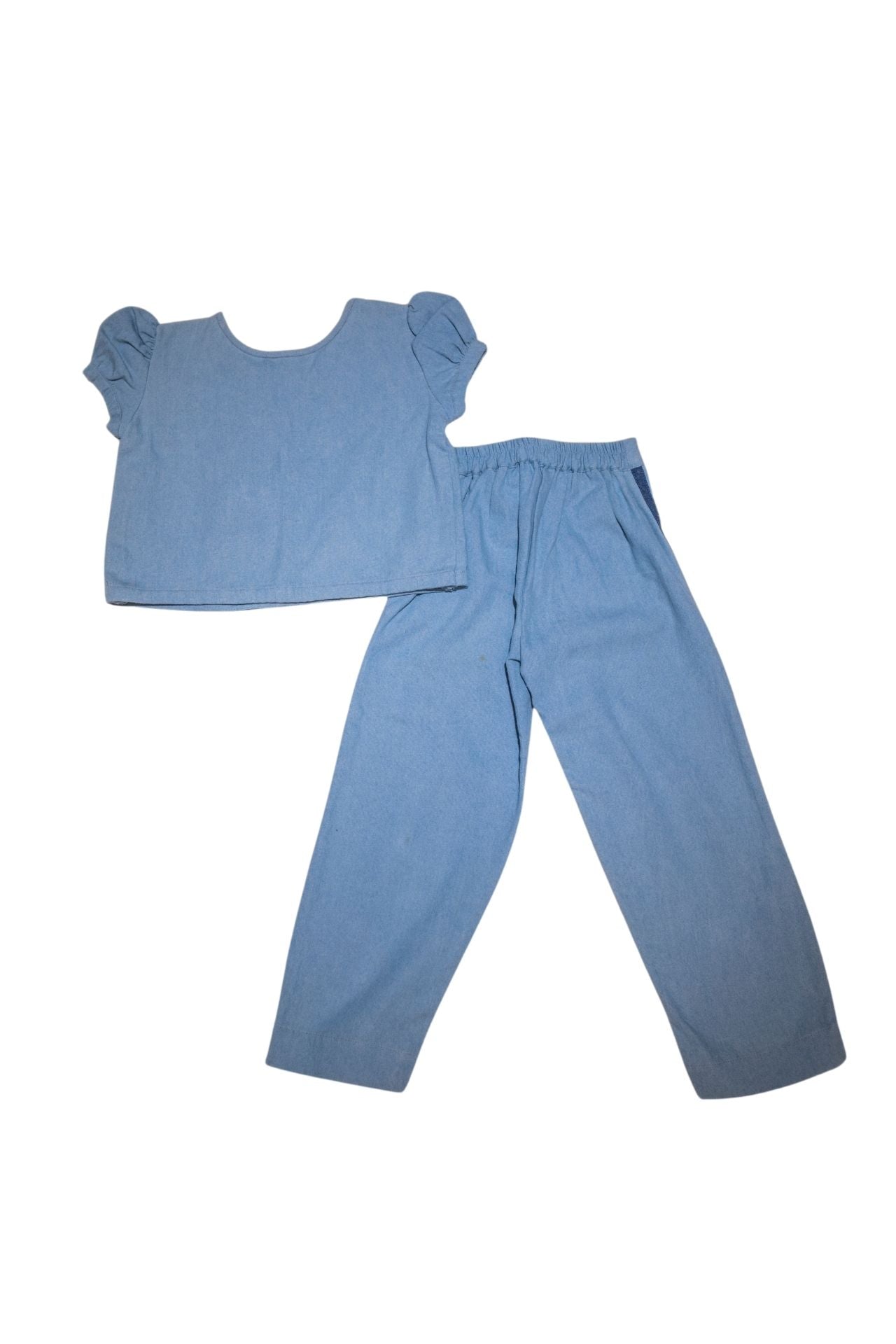 Classic denim meets feminine charm in this bow-detailed co-ord set.