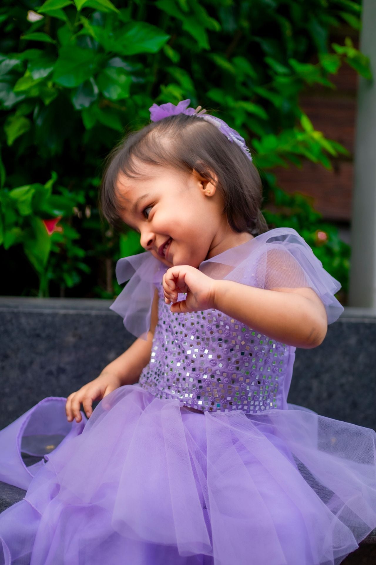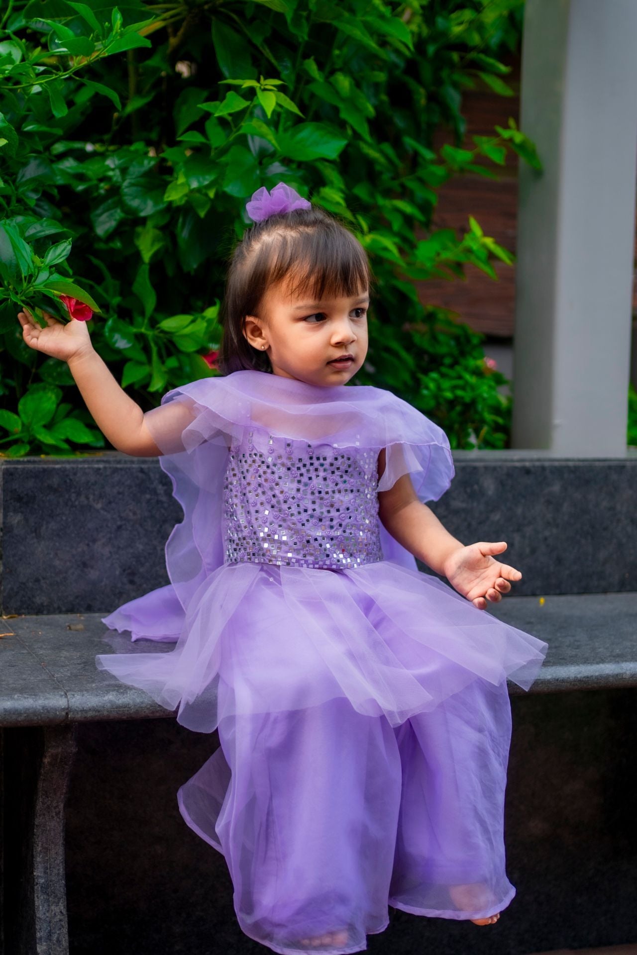 Designed in a delicate lilac hue, this festive set pairs a mirror-embellished top with flowy flare pants for all-day comfort and style. The soft, breathable fabric ensures ease of movement, while the subtle mirror accents bring a festive shine. Perfect for occasions like Rakhi, Diwali, or weddings, it’s made for little girls who love to dance, play, and celebrate in style.